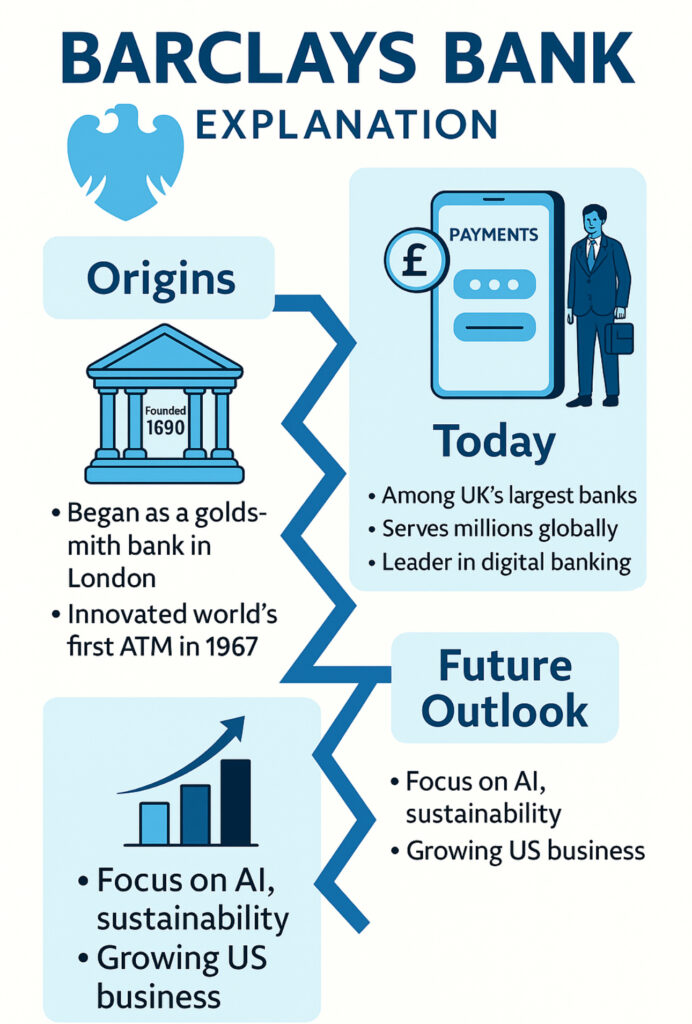 From its humble beginnings as a small London banking house in 1690, Barclays Bank has grown into one of the world’s most recognized financial institutions. Known for innovation, global reach, and a strong retail banking presence, Barclays continues to shape the future of banking.